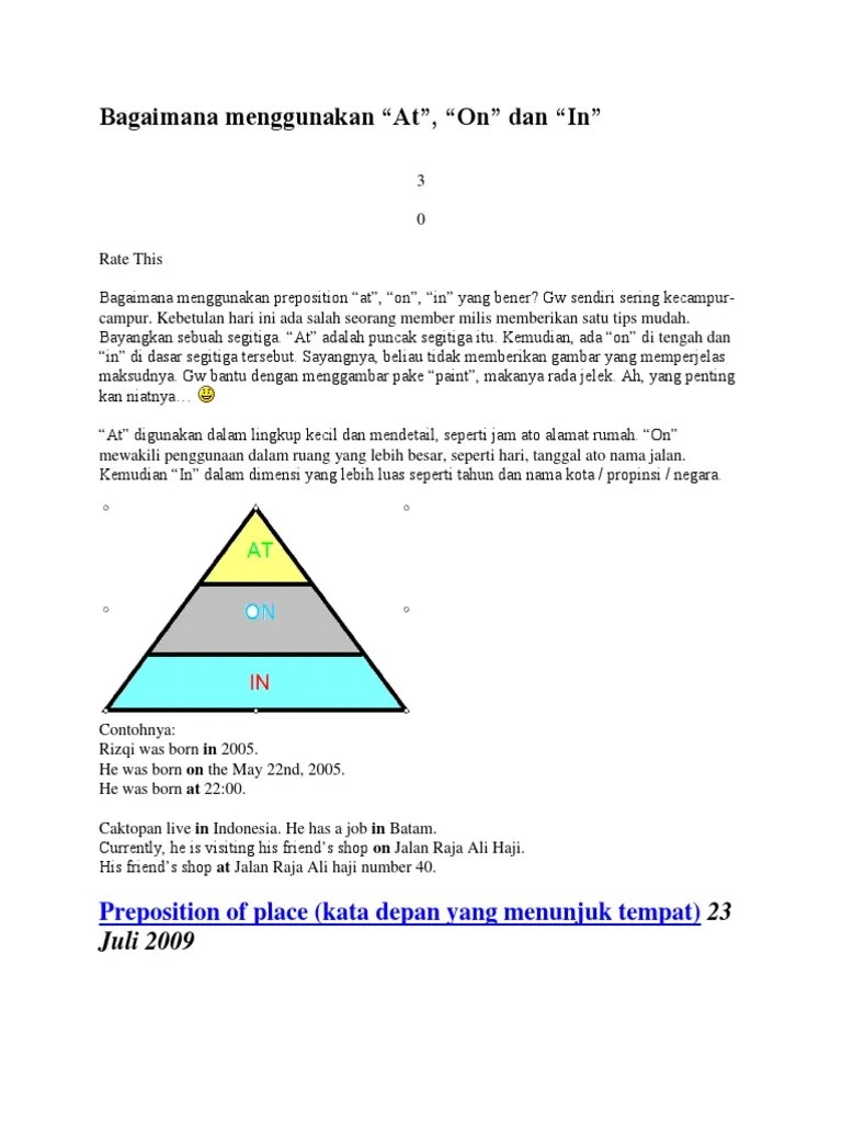 Preposition adalah kata depan atau kata penghubung dalam suatu kalimat bahasa inggris. The finding of the research. Preposisi merupakan kata depan yang digunakan dalam sebuah kalimat baik bahasa inggris maupun bahasa indonesia. Contoh kalimat yang menggunakan preposition of place: Preposition dalam bahasa inggris merupakan bagian dari part of speech yang berfungsi sebagai kata depan atau kata penghubung dalam suatu kalimat.